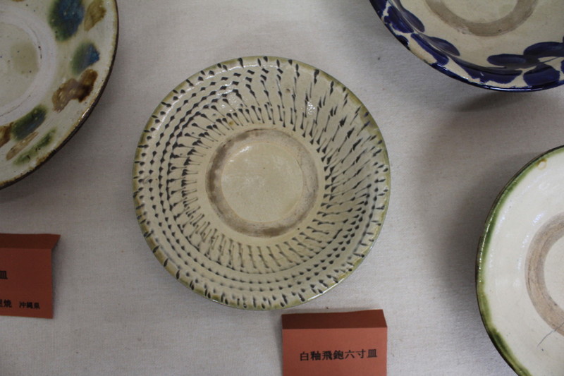 白釉飛鉋六寸皿(壺屋焼)