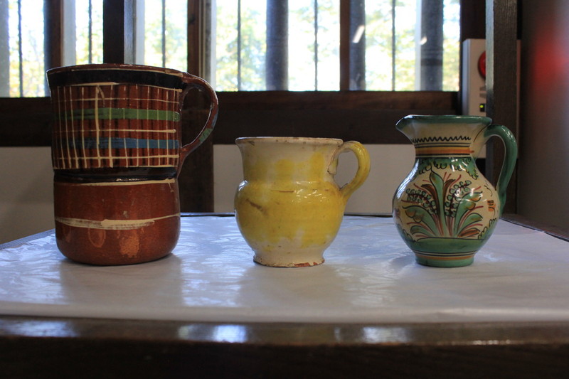 飴地格子文ミルク差し(メキシコ)、白地黄釉ミルク差し(メキシコ)、ミルク差し(イタリア)